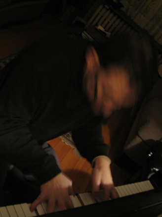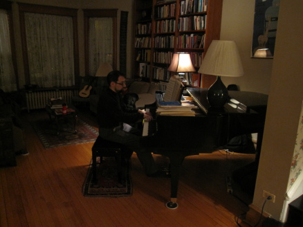 Here are some photos of that kind, of Rick Perlstein playing jazz (excellently) at my place recently: